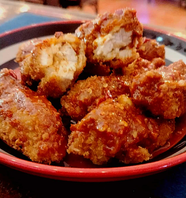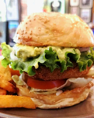 Mild Spiciness Marinated chicken strips coated in JBs ZINGER style seasoning and fried to perfection. Topped with iceburg lettuce, diced tomoatoes, bacon and cheese, with a cooling lime and pepper mayo. Served with a house salad, hand cut chups or onion rings.